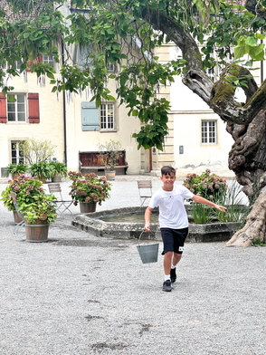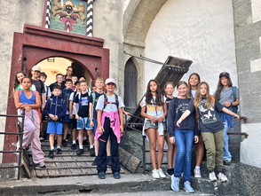 Am Dienstag, 27.8.2024 trafen wir uns am Veloständer und fuhren danach mit Zug und Bus zum Schloss Lenzburg. Viele, viele Treppenstufen mussten wir hochlaufen, bis wir endlich beim Schloss waren.