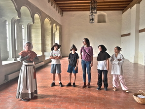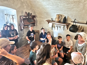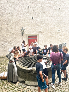 Die Magd Anna hat uns ins Mittelalter mitgenommen und von ihrem Alltag erzählt. Wir erfuhren, wie es in einer Küche aussah, wie tief der Sodbrunnen ist, und durften sogar eine kleine Mittelalter-Modeshow machen!