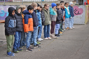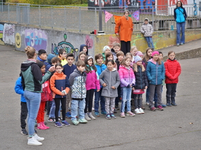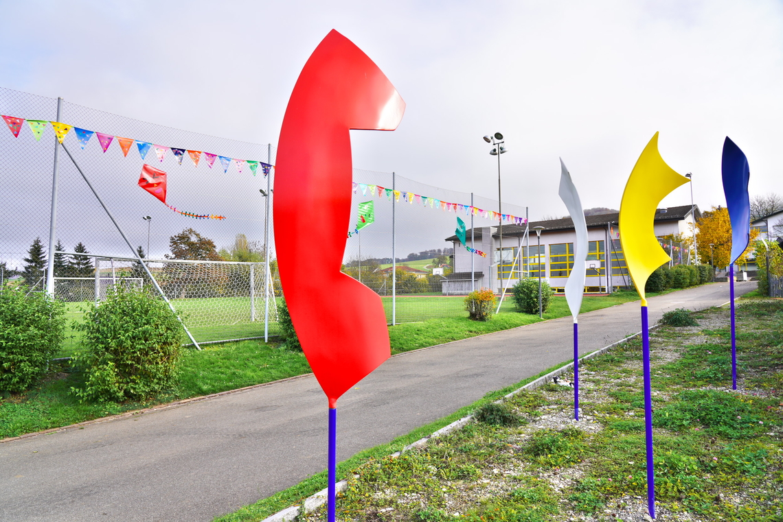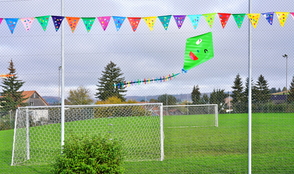 Am Dienstag, dem 5. November, um 9:30 Uhr, weihte die Schule Ehrendingen im Oberdorf die neue Herbstdekoration am Ballauffanggitter des Sportplatzes ein. Rund 250 Schülerinnen und Schüler der 1. bis 6. Klasse haben 210 Wimpel zugeschnitten und mit bunten Dreiecken verziert. Jede Schulstufe beteiligte sich nach ihren Möglichkeiten an dieser Dekoration.