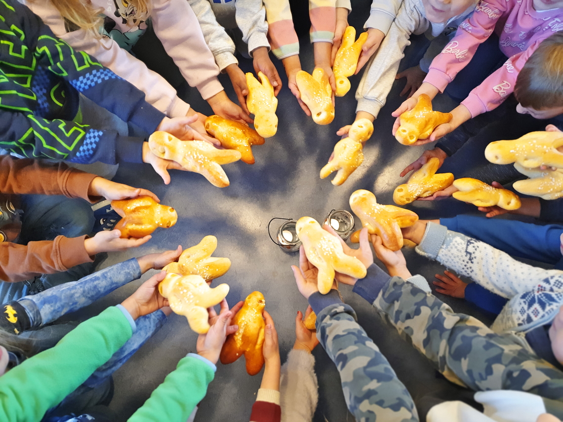 Nach dem Konzert haben sich die Kinder einen Znüni verdient - einen feinen Grittibänz, der allen Kindern geschmeckt hat.