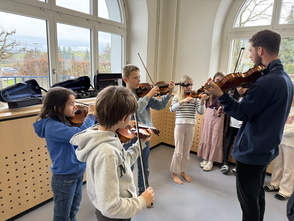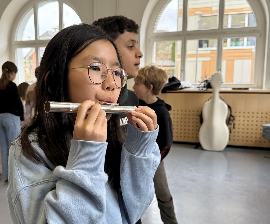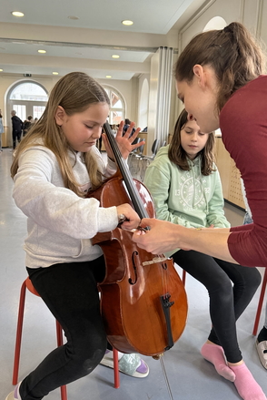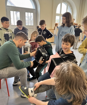 Am Mittwoch, 12. März war die Musikschule für eine Instrumentenvorstellung zu Besuch bei den 3. und 4. Klassen. Dabei durften die Kinder folgende Instrumente näher kennenlernen: Akkordeon, Violine, Cello, Querflöte, Blockflöte, Piccoloflöte, Traversflöte. Nachdem die Musiklehrpersonen etwas auf ihrem Instrument vorgespielt hatten, durften die Kinder Fragen stellen und die Instrumente nach Lust und Laune ausprobieren.
