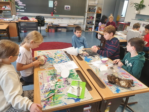 Am 6. November, Donnerstagmorgen, wurden einige Kindergarten- und Schulkinder in den Unterricht begleitet, um eine handwerklich-künstlerische Stunde beim Räbeliechtli-Schnitzen zu verbringen. Die Kinder genossen diese Zeit, welche die Erwachsenen sich extra für sie genommen hatten, sehr.