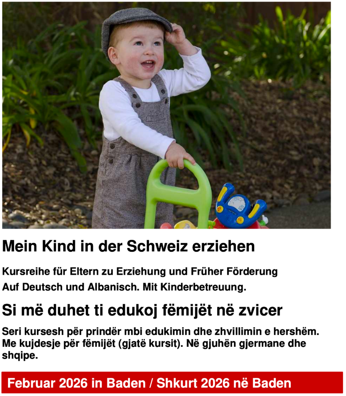 Die Kurse richten sich an Eltern von Kindern im Alter von ein bis zehn Jahren. Jede Kurseinheit dauert 2,25 Stunden. Ziel ist es, Eltern zu stärken und damit Kinder sowie die ganze Familie zu unterstützen. Mütter und Väter sind herzlich willkommen.